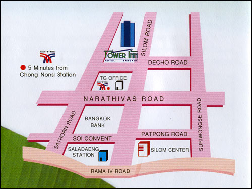 | 1) Nearby Attraction within walking distance Silom Village, Indian Temple, Central Department Store (Silom), Patpong, Thaniya Plaza, Robinson Department Store, Silom Complex 2) Nearby Hotels within walking distance 3) Nearby Hospital 4) Nearby Embassy & Consulate 5) Nearby BTS Sky train station : Chong Nonsi (10 minutes walk) |
