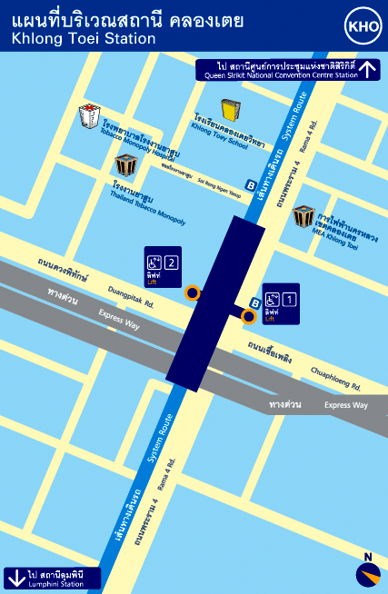 Khlong Toei Station : Along Rama 4 Road near the MEA Khlong Toei and the Bangna Express Way.