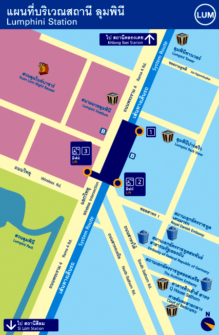 Thai-Belguim cross over bridge.   picture from www.bangkokmetro.co.th 1. Rama 4 Road 2. South Sathorn Road 3. Wireless Road, Suan Lum Night Bazaar M.R.T. Route Map |