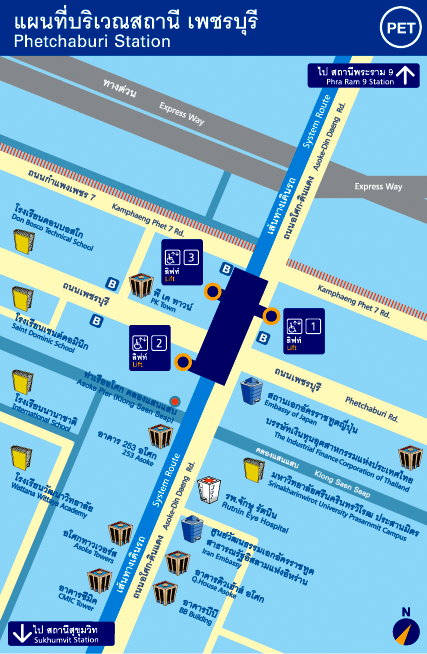 Along Asoke Road and Asoke Phetchaburi Intersection near the Embassy