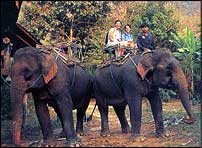 | 10:00 | Continue to the Elephant Camp, by bamboo rafting along a rushing stream of Kwai Noi river. Arrive the Elephant Camp for an exciting elephant back-riding through a jungle |  |