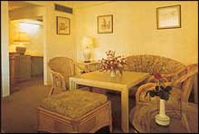 Each room or suite is tastefully appointed and equipped with modern amenities while attention is given to every detail in order to ensure the utmost comfort and relaxation. The Presidential Suite, the ultimate in luxury, comprises three ultra modern bedrooms, a sauna, a whirlpool, a living room, and a multi purpose room. Guests may also choose to luxuriate in one of the 14 junior suites or 48 superior rooms in the hotel building, or enjoy the dream like coziness of the split level houses in one of the 21 suites or three deluxe suites. |