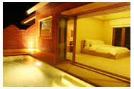 Plan) - Bedroom with king-size bed, direct access to walled-in private garden - Corner sofa daybed with large overlooking window - Private park dining area - Open air private park bath pool with separate shower, additional exclusively designed BIG RAIN shower - Double minimalist concept hand-made basin, facilitated with auto flush faucet mixer - Separate glass walled shower, walk-in closet - Mini-bar, personal lock drawer and hairdryer - In house radio, TV with sattellite channels, DVD player - Air conditioning - Private outside sitting area with direct access to sand park Pure Style Living Villas Sweet : 120 sq.m : (Bungalow Plan) Caring with Heart Villa Suite 120 sq.m. Falling in Love Villa Suite 120 sq.m. - Relaxing round shape villa with King size round bed and pillow, direct access to walled-in private garden - Round shape sofa daybed overlooking swimming pool - Spa pool with whirlpool jet system. Separate big rain shower, walk-in closet - Double glass basin with separate faucet mixer - Mini-bar, personal lock drawer and hairdryer - In house spa radio, TV with sattellite channels, DVD player - Air conditioning - Private outside sitting area with direct access to sand park - Private park dining area Into a Cool Pool Villas Suit (One Bedroom) : 150 sq.m Into a Cool Pool Villas Suit (Two Bedroom) : 250 sq.m : (Bungalow Plan) - Two separate bedrooms with double slide doors opening to walled-in private garden - Direct access to private swimming pool equipped with standard jet system - Private sunbath area - Other features are same as those in Sense of Living Villas |
