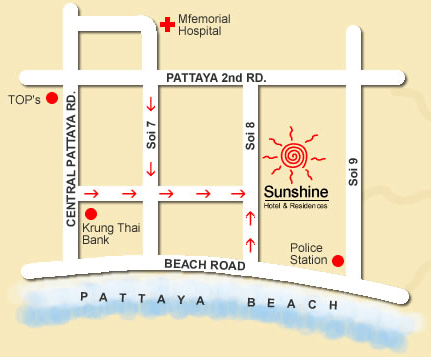 | Sunshine Pattaya, located in the centre of Pattaya's famous Soi 8 nightlife entertainment zone, is the only hotel in this area that is tastefully blended with the natural landscaped tropical garden. |
