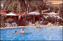 with swimming pool. - Standard rooms are 17sq m with one queen size bed, hot & cold shower, telephone and balcony. - Superior rooms are 20 sq m with twin or king size bed, additions of TV, mini bar, refrigerator |