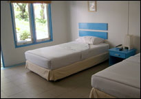 beach cottages and suites, all with sea or garden views. Room Type : - Superior Room 37 rooms, 24 sq.m. - Deluxe Cottage 35 rooms, 21/25 sq.m. - Beach Front Room 5 rooms, 30 sq.m. - Suite 2 Bedrooms with 1 Bathroom 1 room, 70 sq.m. - Suite 2 Bedrooms with 2 Bathrooms 1 room, 90 sq.m. Guest Room Features : All guest rooms and suites are equipped with a wide range of amenities and include: - Individually controlled air conditioning - Colour TV with Local channel: 3,5,7,9,11 and Satellite - Bath room amenities with hot and cold shower | |